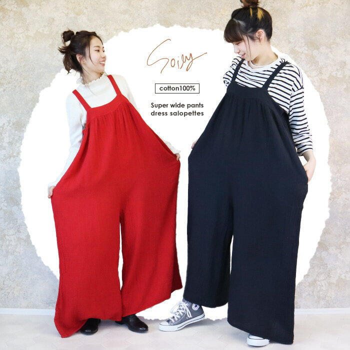 サロペット レディース ワイドパンツ レディース 春 きれいめ 超ワイド ドレスサロペット 綿100% ダブルガーゼ ナチュラル コットンガーゼ Wガーゼ 無地 大きいサイズ XL 3L 4L コットン 春夏 秋冬 おしゃれ かわいい 大人可愛い オリジナ *00
