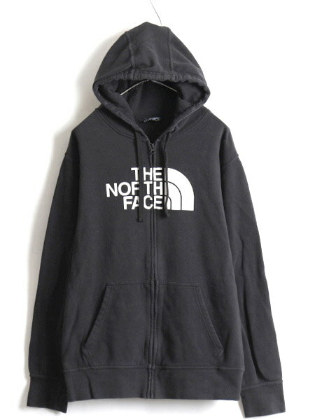 大きいサイズ XL 人気 黒 ■ ノースフェイス プリント フルジップ スウェット フード パーカー ( メンズ ) 古着 The North Face トレーナー| 中古 アウトドア ノース プリントパーカー フードパーカー ロゴパーカー ジップアップ スエット モノトーン 裏起毛 ブラック US古着