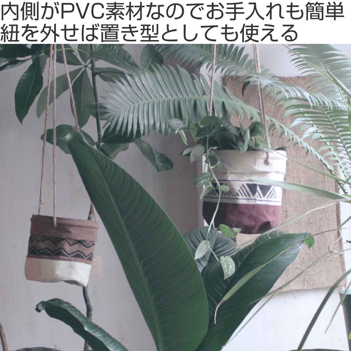 プランター コットンポットカバー S ( 鉢カバー プランターカバー 布 綿 コットン 4号鉢対応 4号 吊り下げ ハンギング スタンド 麻ひも 観葉植物 鉢植え 花 室内 収納 小物入れ ナチュラル おしゃれ )