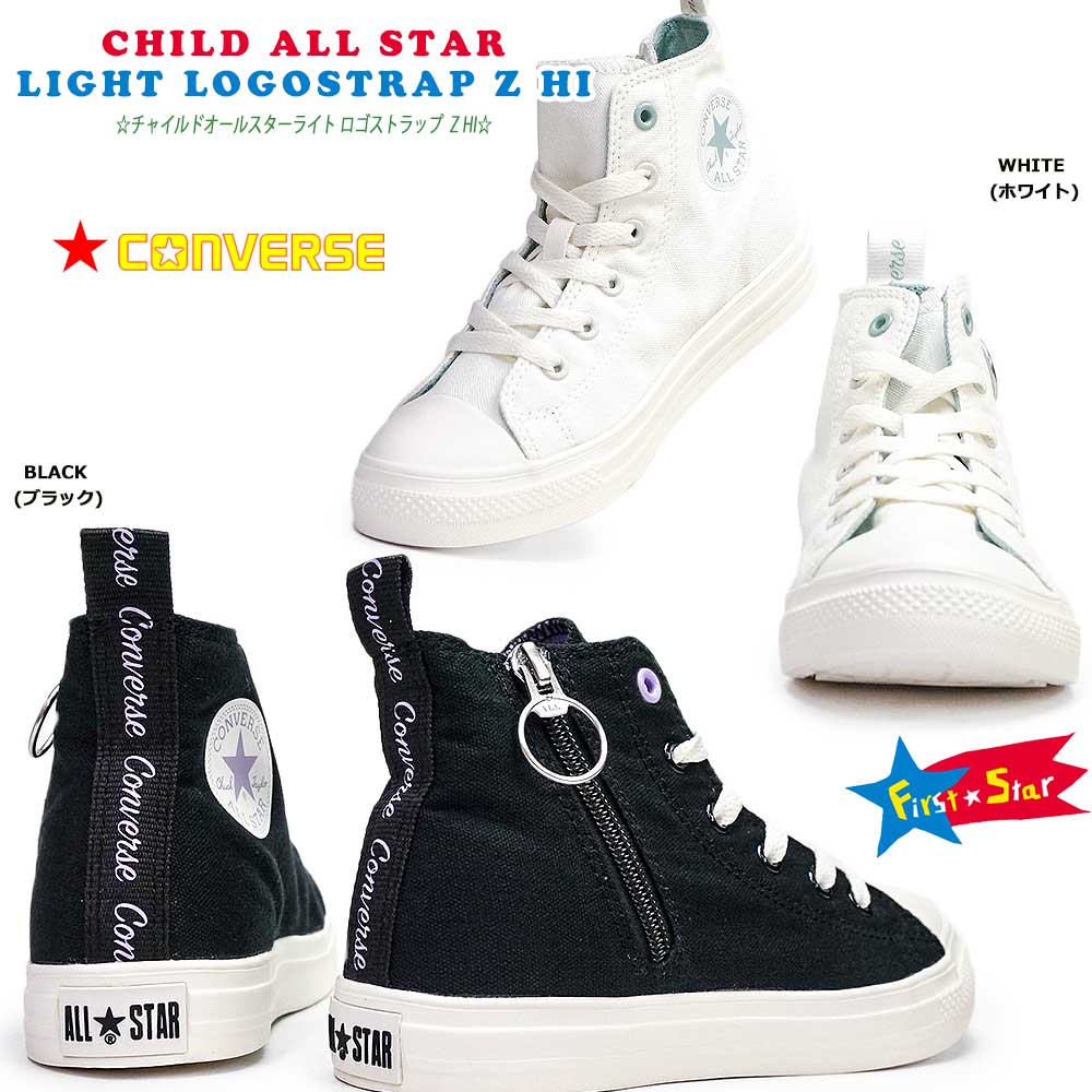 )かかとの厚み:約2cm生産国:ベトナムコンバース こども キッズ スニーカー チャイルド ジップ ジッパー ブラック ホワイト 黒 白 紫 緑 滑りにくい 防滑 軽量 抗菌 軽量ソール 脱ぎ履きしやすい 屈曲性 お出掛け ニュアンスカラー くすみカラーCD AS LIGHT LOG HICHILD ALL STAR LIGHT LOGOSTRAP Z HI【smtb-TK】Color Variation ブラック ホワイト